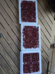 🌳苗木から3年半で初めての本格的な収穫で~す。😊 途中、台風の直撃で約3割が枯れましたが、残った木が頑張りました。 🐧 約2.5㎏でしたが、ご協力頂きました皆様、大変有難うございました。🙇♂️